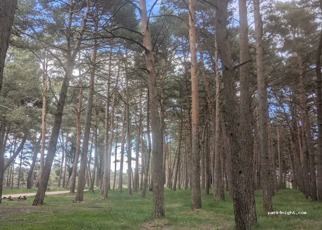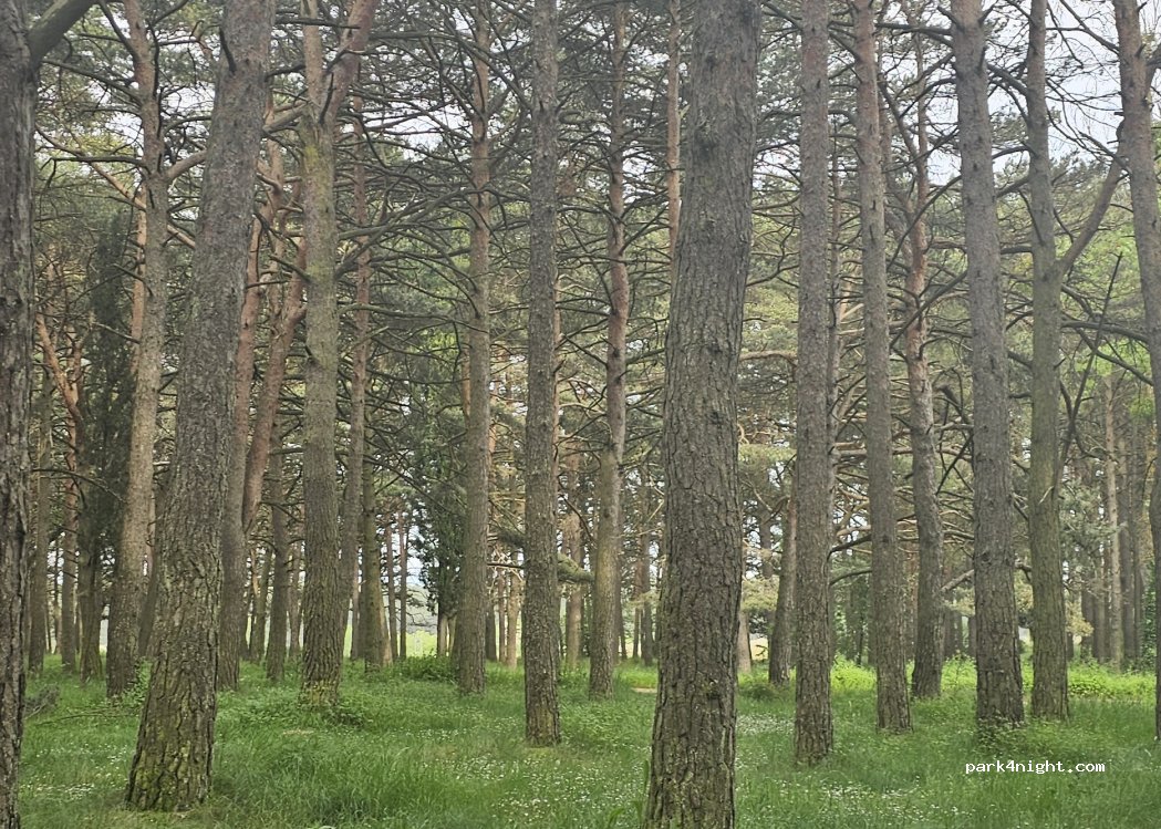 Several clearings in a completely peaceful fir forest. You can sit wherever you want, and the space is endless. It's superb.