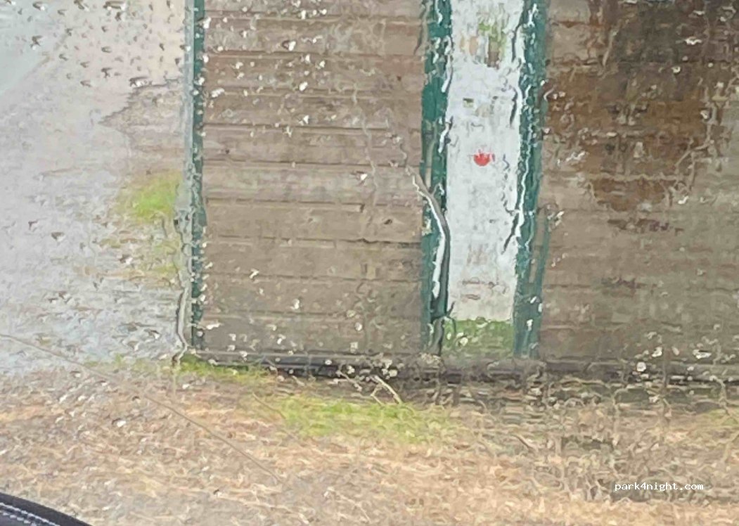 Pequeña plaza de aparcamiento a lo largo de la calle. Permite hacer una parada para hacer un picnic, con un bote de basura justo enfrente. No permite dormir allí.