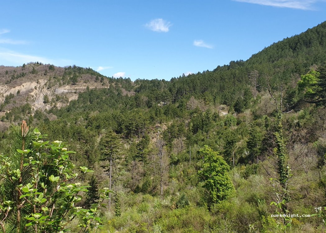 Parking en bord de chemin, place pour 2 ou 3 vans. Route en contre-bas mais peu passante.