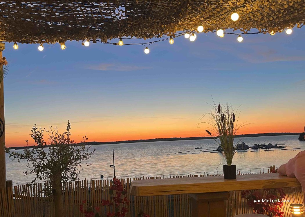 Effectivement grand parking gratuit mais pas de marquage au sol donc c’est l anarchie pour bien se garer. Mais ça a le mérite d’exister avec les services sur place . Nuit tranquille et balade sympa au bord de l’eau . Une boulangère passe à velo vers 8h pour proposer du pain et viennoiserie , elle sonne la cloche ! Très sympa