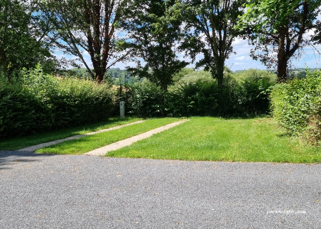 Petite aire juste à l’entrée du camping. Les emplacements ne sont pas nivelés et la borne est hors service (donc gratuit). Dommage parce que l’endroit est vraiment calme et charmant. Idéal pour une halte sur la route.