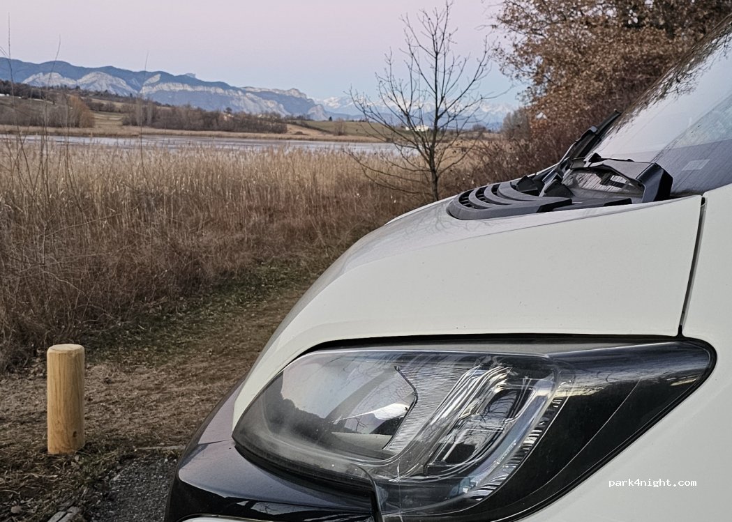 Bel endroit au calme. En bordure d'une petite route. Quelques véhicules durant la nuit mais rien de rédhibitoire. Très beaux reflets sur le lac au petit matin depuis la digue.