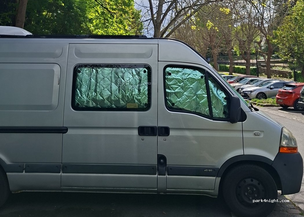 Quiet parking place in a good neighborhood right next to the station. we stayed the night here with our small van and travelled to Paris by train from here. the parking spaces are not big, it fitted our 5.5m van just fine but we do not recommend bigger campers.