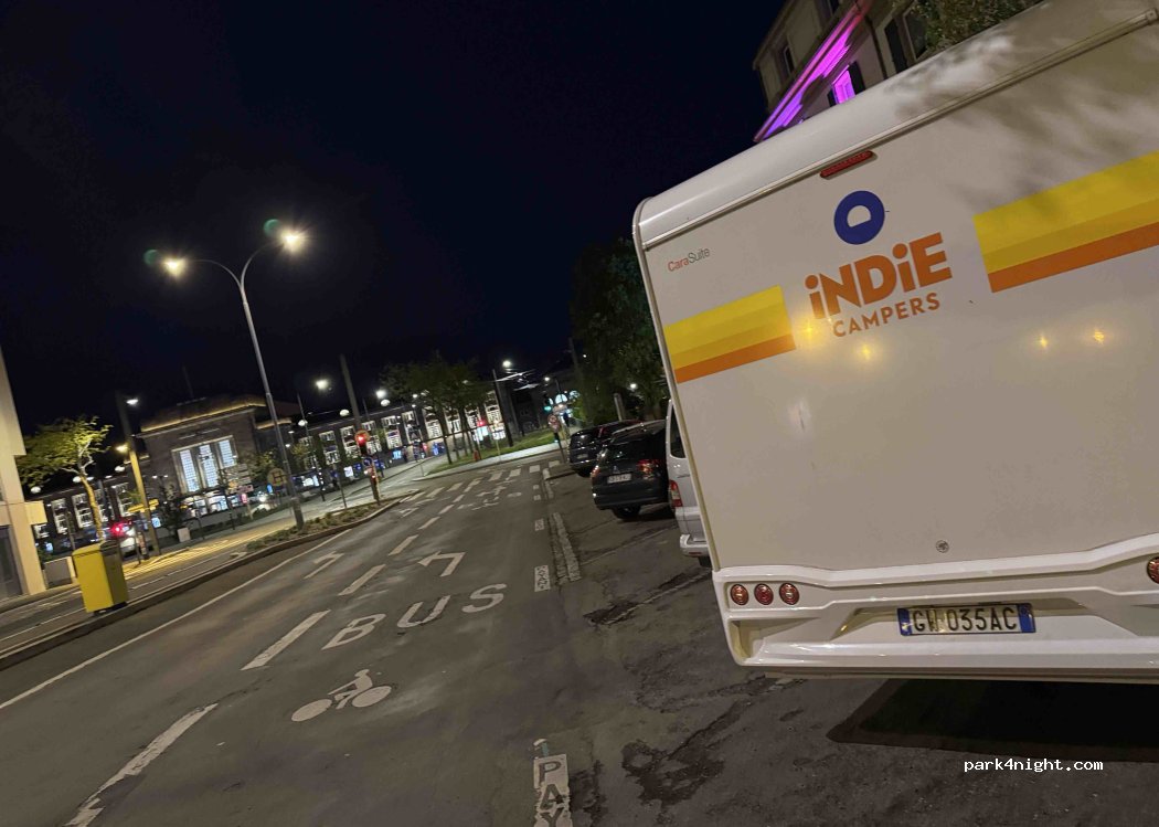 il posto è effettivamente adatto a camper oltre i 6 metri, vicino al centro ed alla stazione, MA molto rumoroso e soprattutto qualcuno nel cuore della notte siamo stati svegliati da qualcuno che provava a tirare nella maniglia del portellone laterale.