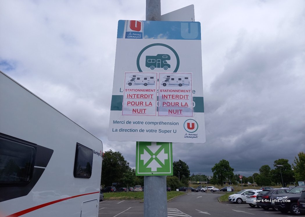 Merci à l’enseigne super-U , On peut y faire ses courses et passer la nuit ,Et allé acheter des croissants le matin avant de partir merci encore