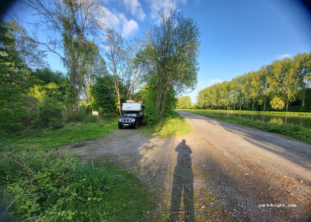 Vous êtes quelque peu caché car il y a une haie d'environ 1 m entre vous et le chemin qui longe le canal.