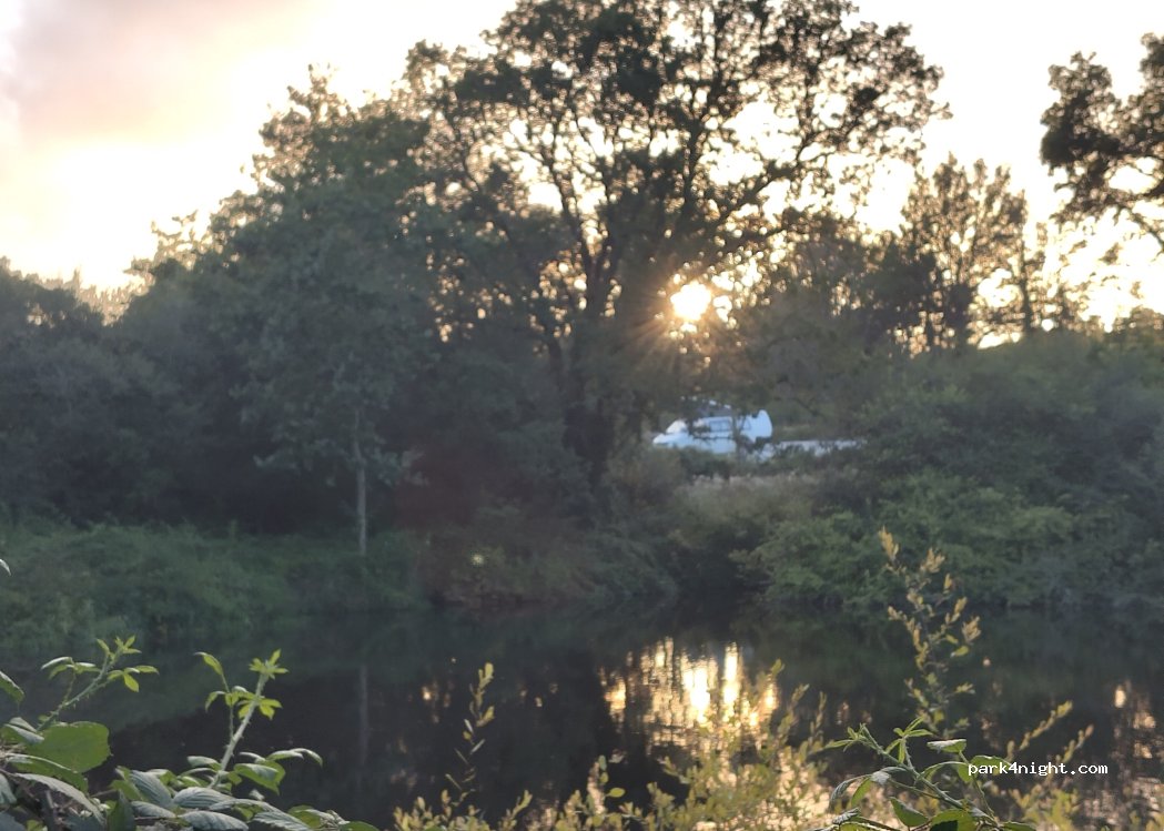 Vraiment un très bel endroit. Calme, devant un étang. Pas de bruit (on entend juste le matin la nationale au loin). Je recommande totalement. J'ai aussi vu la perruche en allant me balader en fin de journée. Nous étions 2 van sur place. Hauteur limitée à 2,1 m