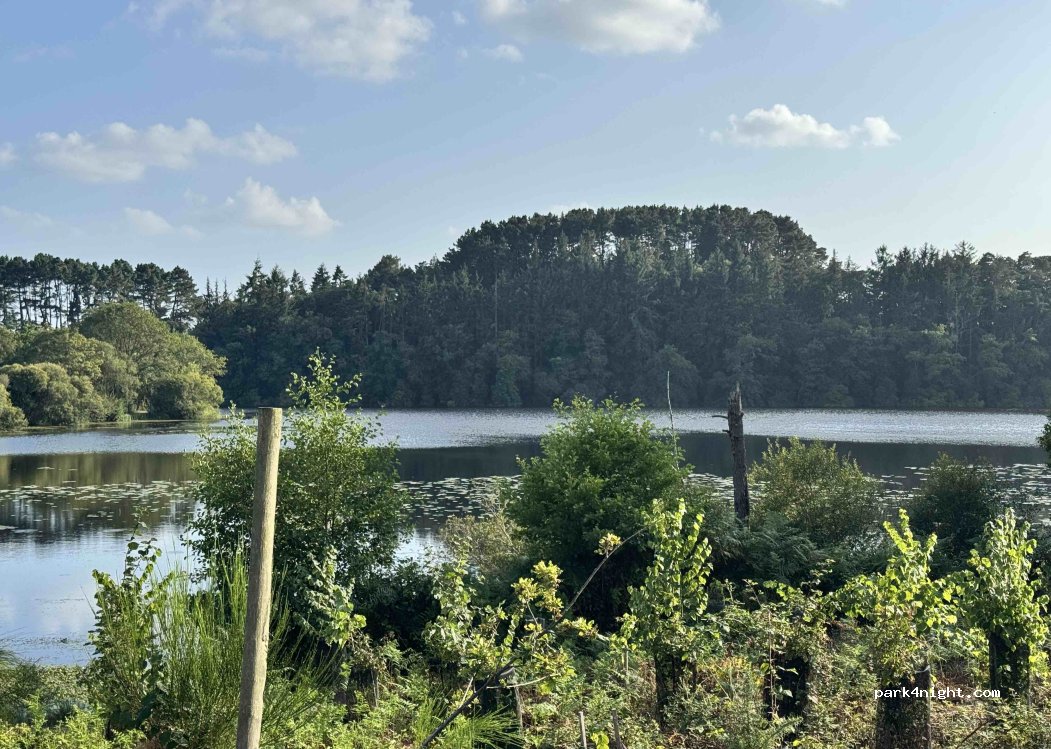 Bon P nature, nous étions seuls en Juillet avant arrivee d'un autre van. ballade vallonnée de 2h30 autour de l'étang, joli. Vu la fameuse perruche jaune et verte échappée, le 4/7/2025.