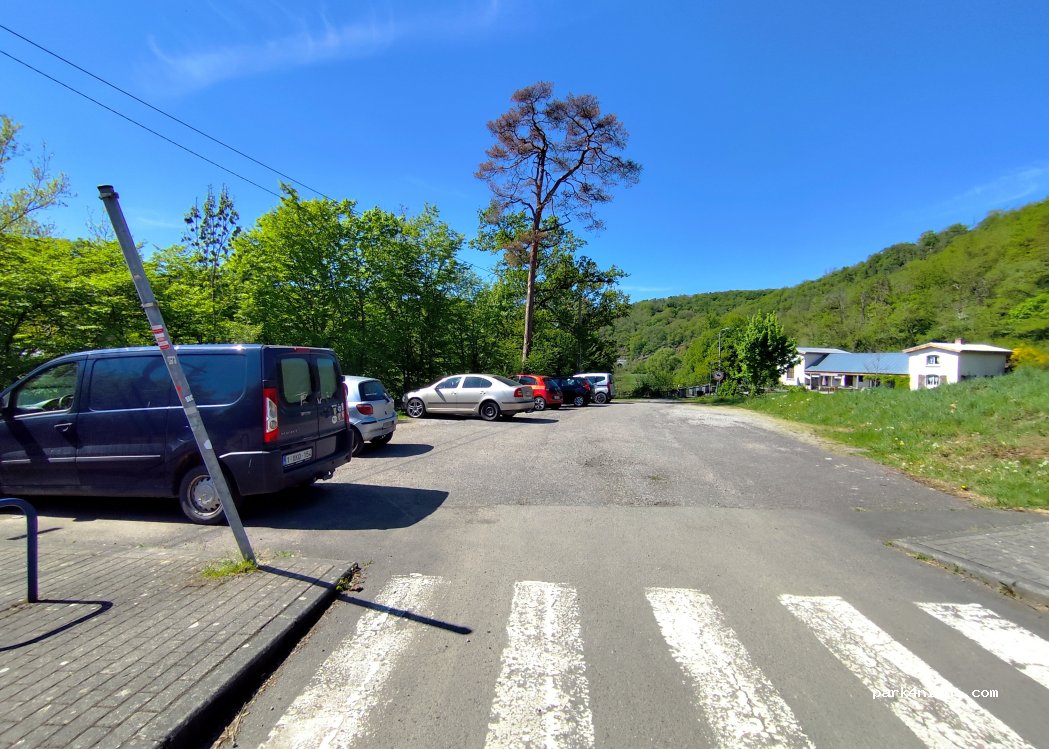 Er stond 1 camper naast mij. Lichte helling. direct toegankelijk aan wandelpaden en nabij de Lesse. Weinig verkeer. Openbare vuilbakken aanwezig.