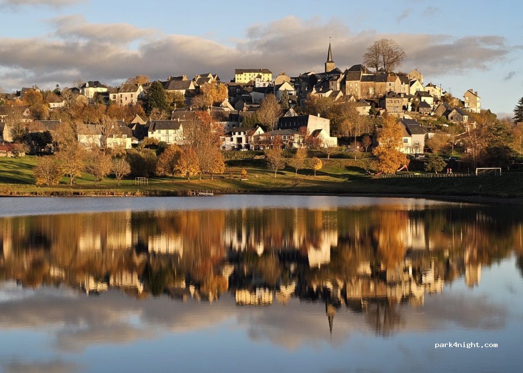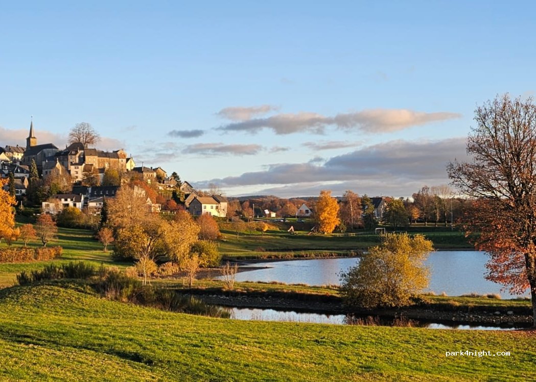 parking calme collé au plan d'eau. endroit idéal avec services pour CC, boulangerie et Vival dans le village. Jeux pour enfants, city stade. Tout prévu pour un passage positif. Merci à la Tour d'Auvergne. A prendre pour exemple.