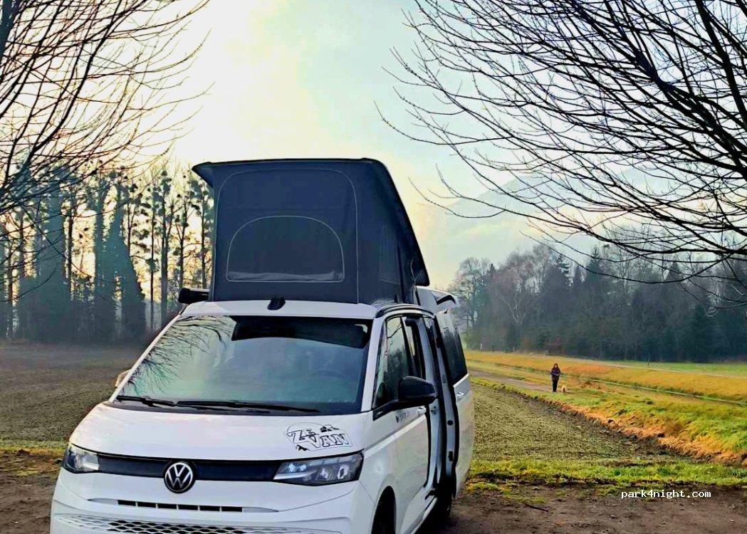 Stationnement sablonneux très tranquille près d'une petite rivière et de sentiers pour patiner ou faire du vélo. Le stationnement gratuit est autorisé pour une durée maximale de 6 heures de 7h à 19h. avec un disque bleu, du lundi au vendredi. Gratuit la nuit et le week-end. Le terrain est pratiquement plat et nous étions environ 3 campeurs là-bas pour la nuit. A proximité se trouve la ville, une aire de jeux et quelques bars.