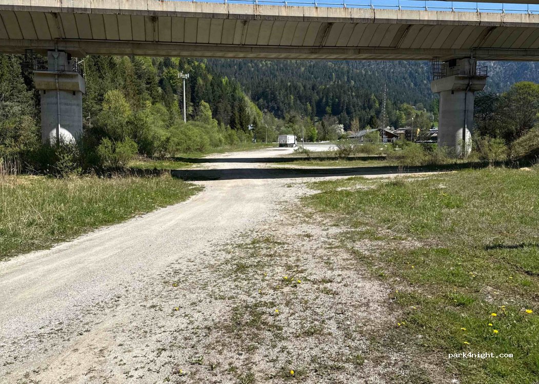Parcheggio sotto l'autostrada. Possibilità di sosta per gli automobilisti troppo stanchi. Bel sentiero per passeggiare con il cane, piste ciclabili/piste ciclabili nelle vicinanze. Nessun servizio, ma molto spazio. Probabilmente utilizzato principalmente da camionisti.