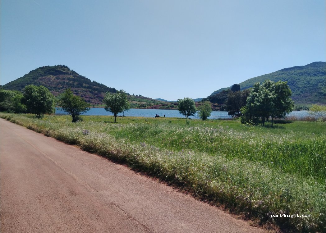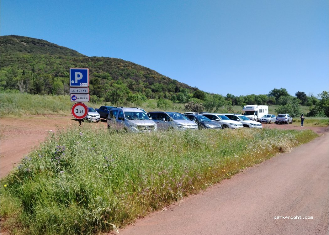 Parking on the shores of Lake Salagou with walks to enjoy. No services. Daytime use only. Ideal for picnics and spending the day.