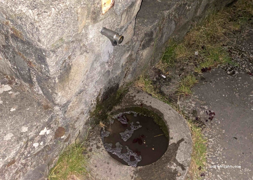 Wasserhahn hinter einer niedrigen Mauer platziert