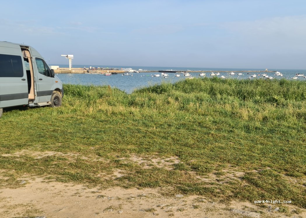 El estacionamiento de tierra normalmente está limitado a 2 m, pero el 1 de mayo el bar estaba abierto desde hacía mucho tiempo. Una obra en construcción lo utiliza actualmente como estacionamiento para su maquinaria. Muy tranquilo.