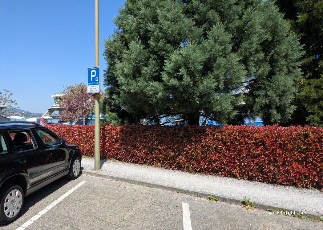 Parkplatz bei Fähranleger mit schönem Park am See, Kleinem Kaffee, Vielen Bänken und Spaziermöglichkeit