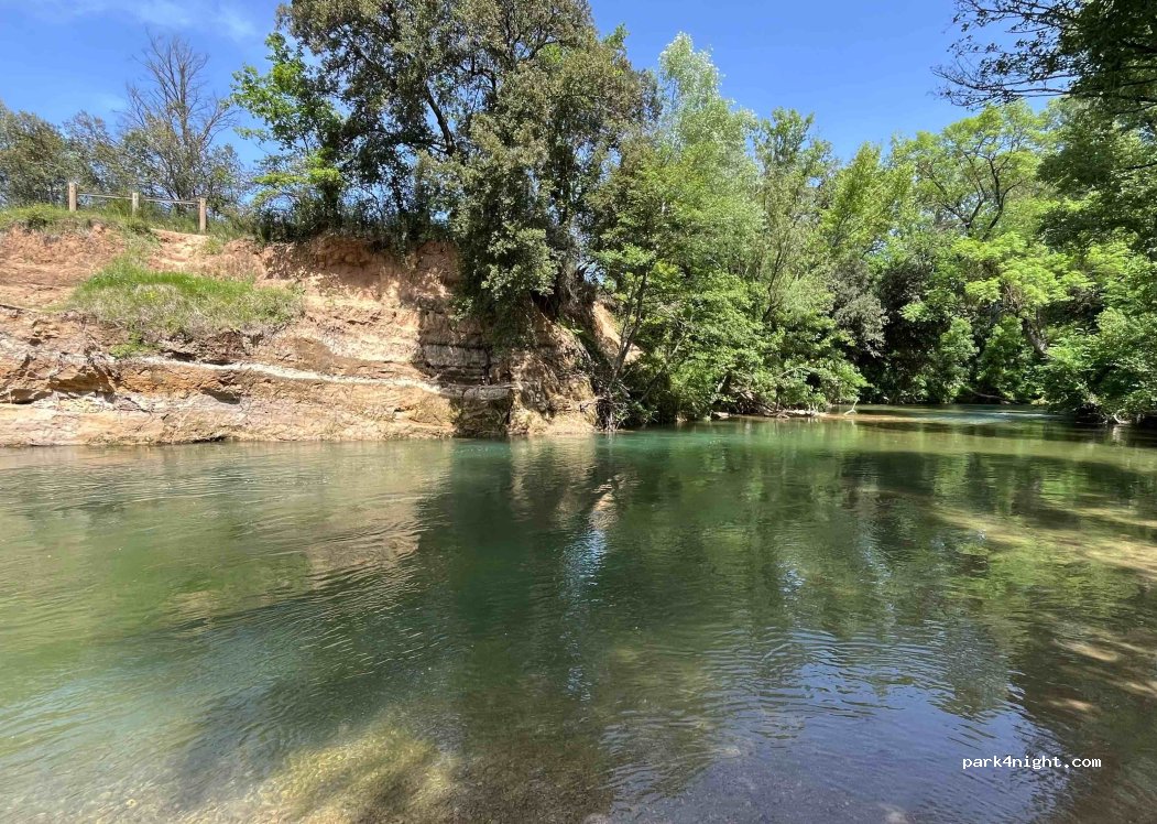 Parking bien aménagé et ombragé au bord d'une petite route. Taille des places Ok pour van et fourgon. Route relativement étroite pour accéder au parking. Lieu très prisé en pleine saison par les locaux pour la baignade. Nuit calme et fraîche. Aucun service. Panneau interdiction de se baigner car baignade non surveillée = commune non responsable en cas d'accident.