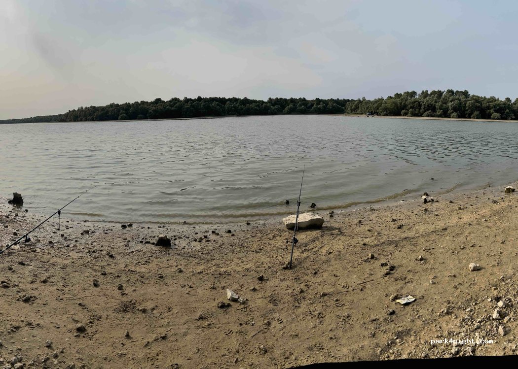 A quiet and secluded fishing spot, located right on the edge of Lake Rillé, with a magical view for the evening and the morning. It's on the edge of a pretty field occupied by friendly, calm and quiet cows. We encountered forest rangers three times, so the place is safe. We spent a moment out of time.