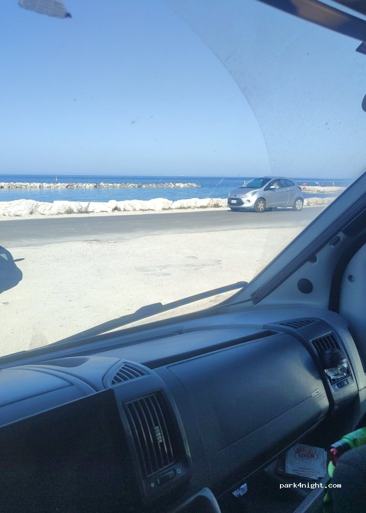 Parcheggio proprio di fronte al mare, ti svegli la mattina con una vista meravigliosa, totalmente gratuito. Siamo andati a mangiare nel ristorante di proprietà del Parcheggio che consigliamo vivamente.