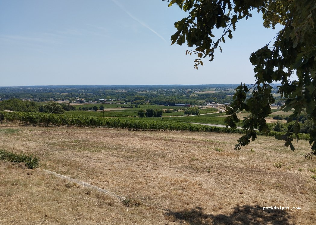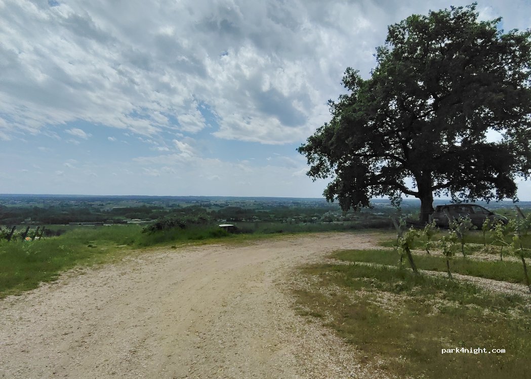 Devant la table d'orientation, un beau chêne qui fait de l'ombre et une vue grandiose et imprenable sur le coin et les vignes.