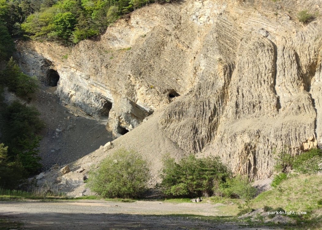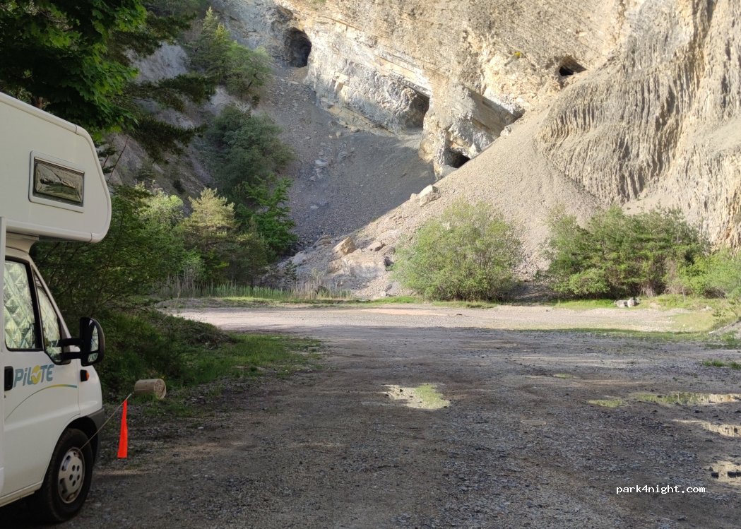 grand emplacement bien plat. Le matin en observant les falaises, on y voit plein de chamois.