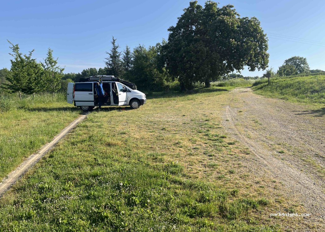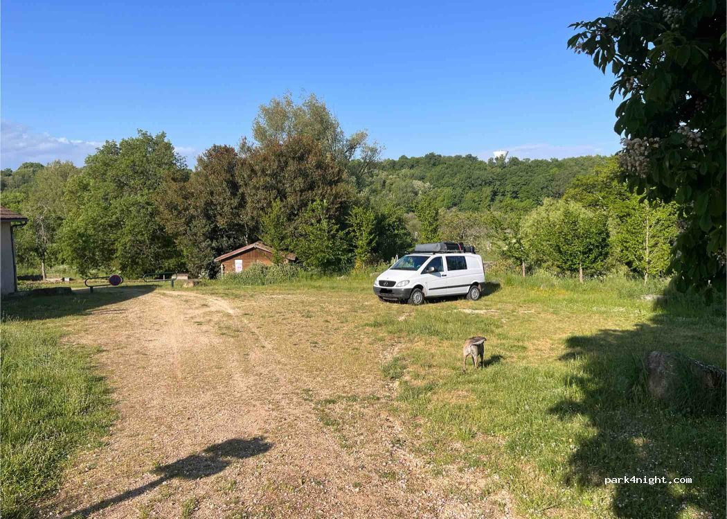 Lieu très agréable, très beau et très calme parfait pour faire une escale avec des enfants (belle aire de jeu). Toilette sur place Pour camping car autonome.
