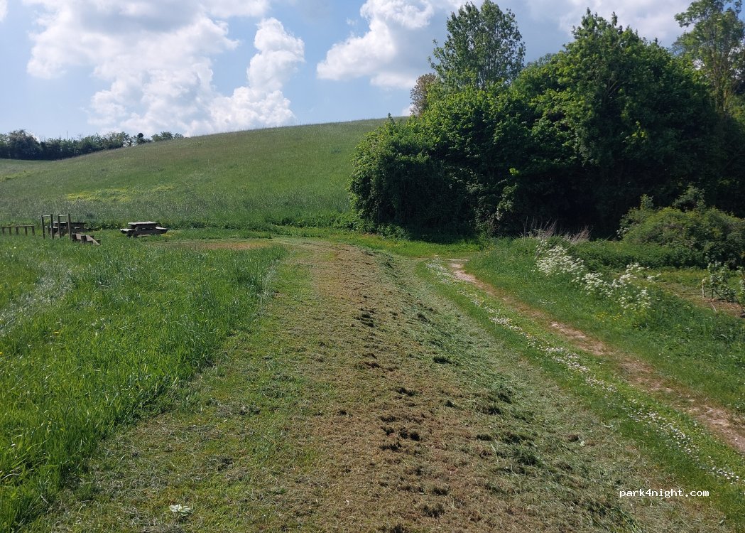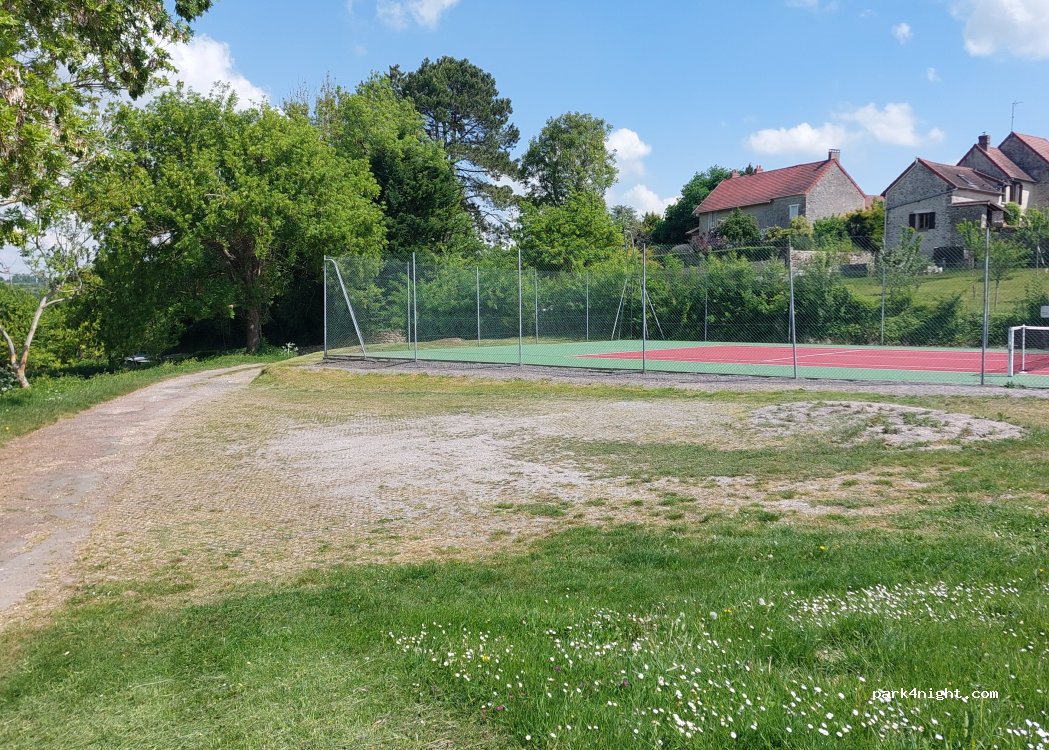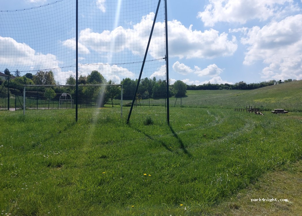 Aire de jeux et pique-nique avec terrain de tennis, basket et tables