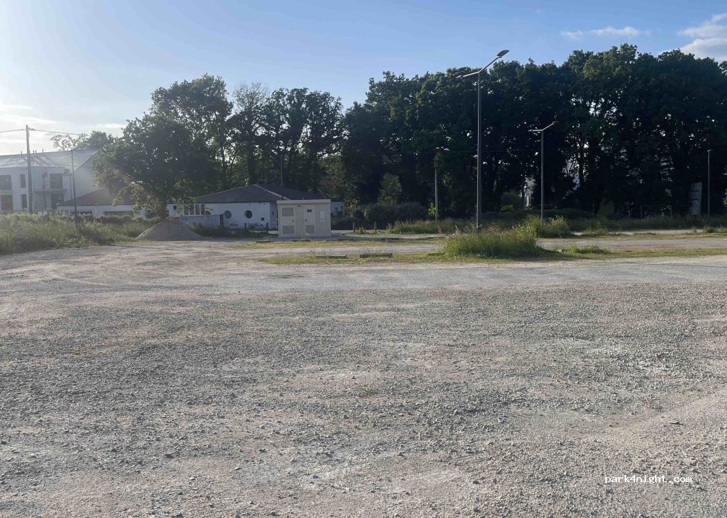 Parking simple sans service. Si on ce gare dans le fond, on ne gêne absolument personne.