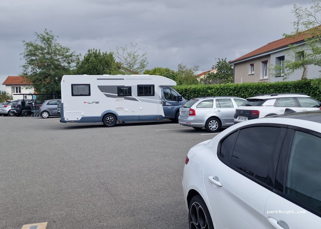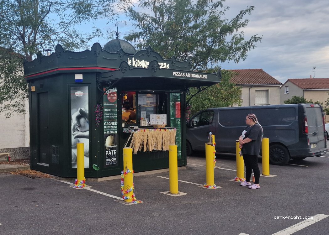 Lovely park up. There is a pizza kiosk, we ordered two pizzas and they were delicious. Has a bakery next to the supermarket and a toilet. Felt safe here overnight as there was CCTV and it was very quiet. Washing machines available too.