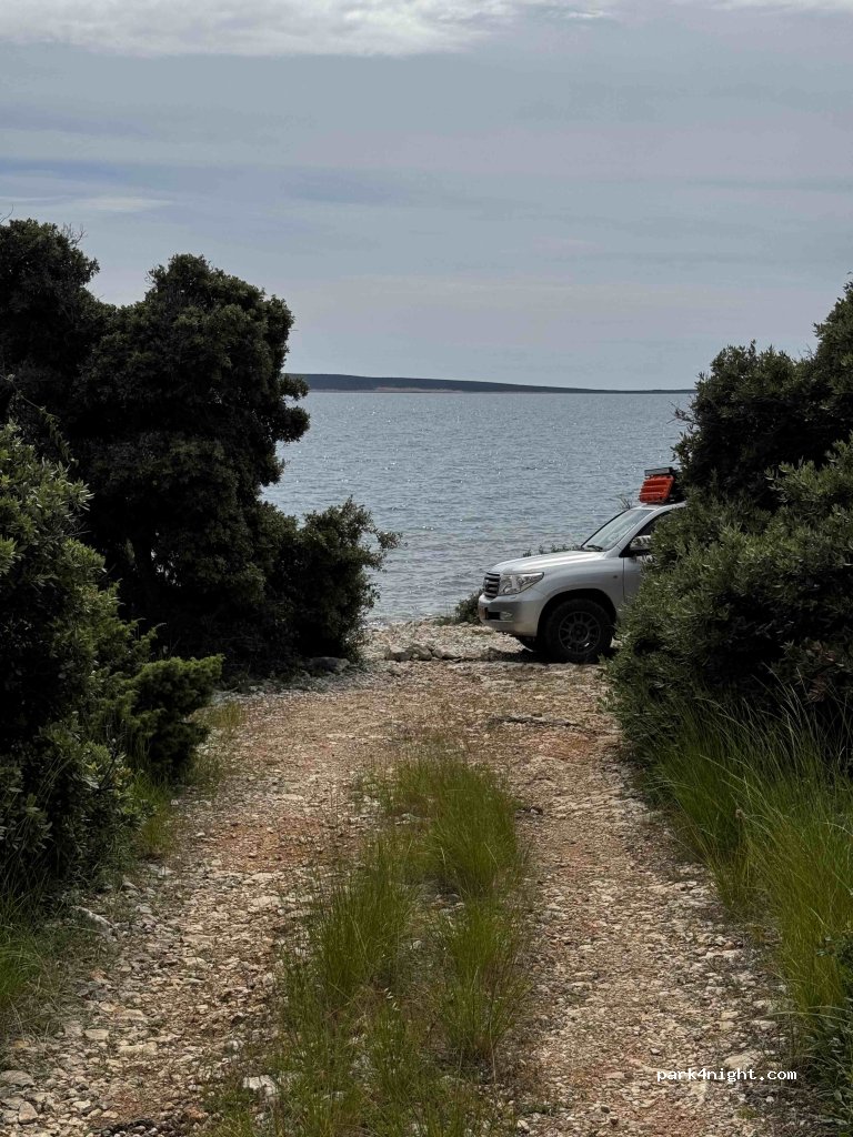 Really nice spot!! We found it easer to carry along the main road, and take the turn that goes through a small (open) metal gate. Follow this down towards Plaža Srčanka. From here the track bends back on itself towards this spot. In a t4 and had no trouble with the track, the rocks are however sharp like everyone has mentioned.