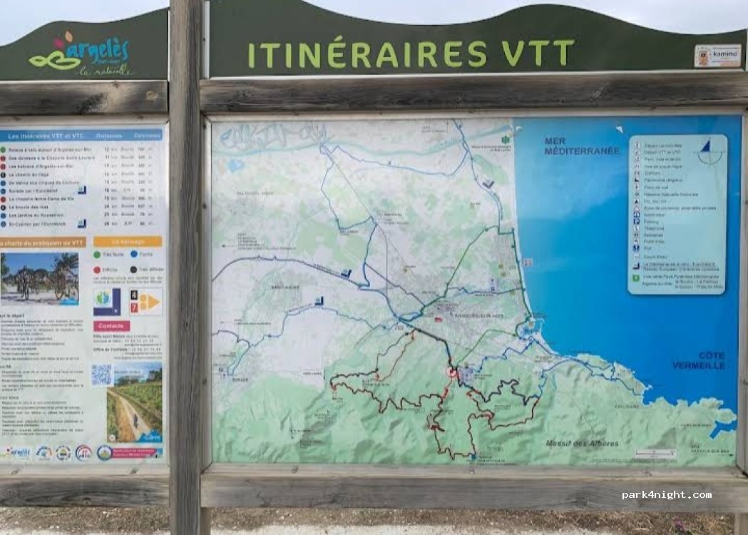 Argelès-sur-Mer is 4 minutes away by car, 38 minutes on foot, and 12 minutes by mountain bike. Closed every day from 9 pm to 7 am.