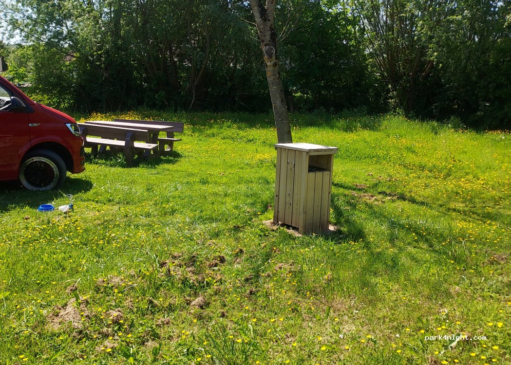 Quiet picnic area on the edge of a small, quiet road, table available and trash can
