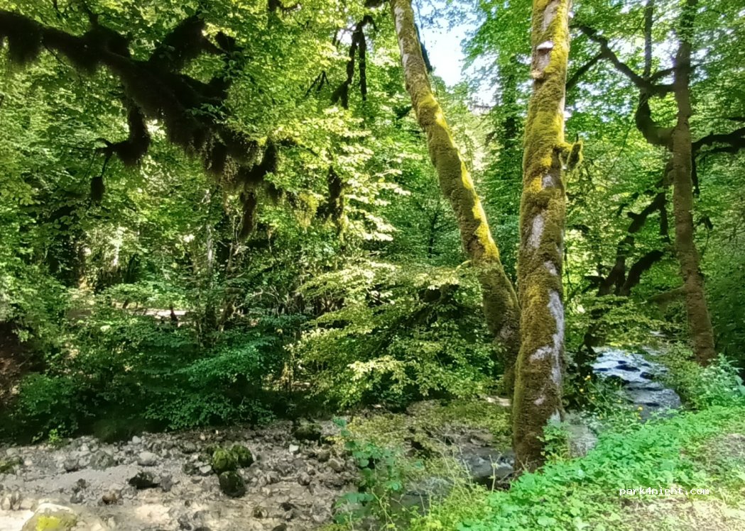parfait pour une pause, des arbres, la rivière à proximité. possibilité de faire randonnée vers la cascade queue d'âne ou queue de cheval. on n'entend pas trop la route