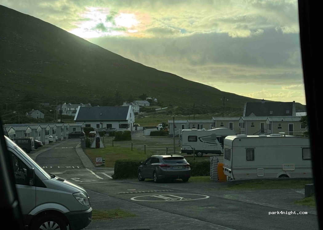 Fantastic site to use as a base when visiting the beautiful Achill Island. Very friendly staff and site is kept really clean and quiet. Good range of facilities including a campers kictchen. Great views from the top sites although it is quite a steep walk to them from the facilities. Site has a small shop in the office which carries all the essentials. Beach is just across the road from the site.