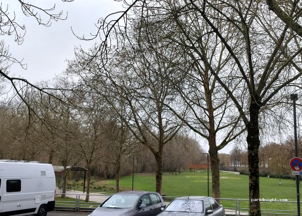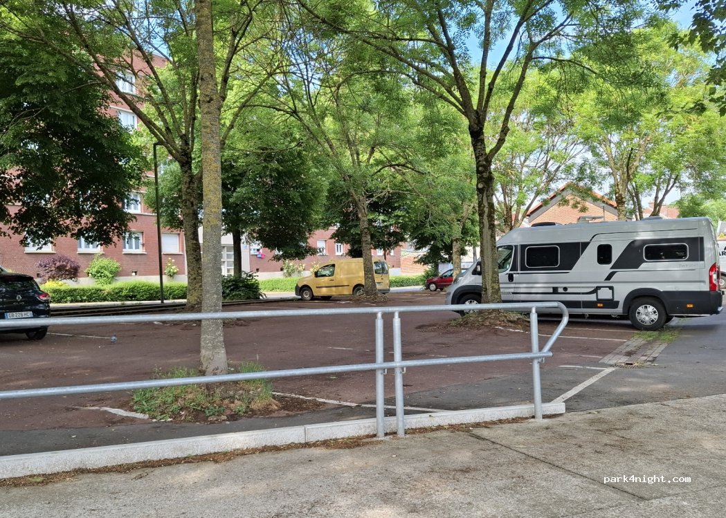 Petit parking payant en journée jusqu'à 17h30. Stationnement nuit toléré. Calme la nuit. Vans et fourgons jusqu'à 6,50m. Gros CC s’abstenir.