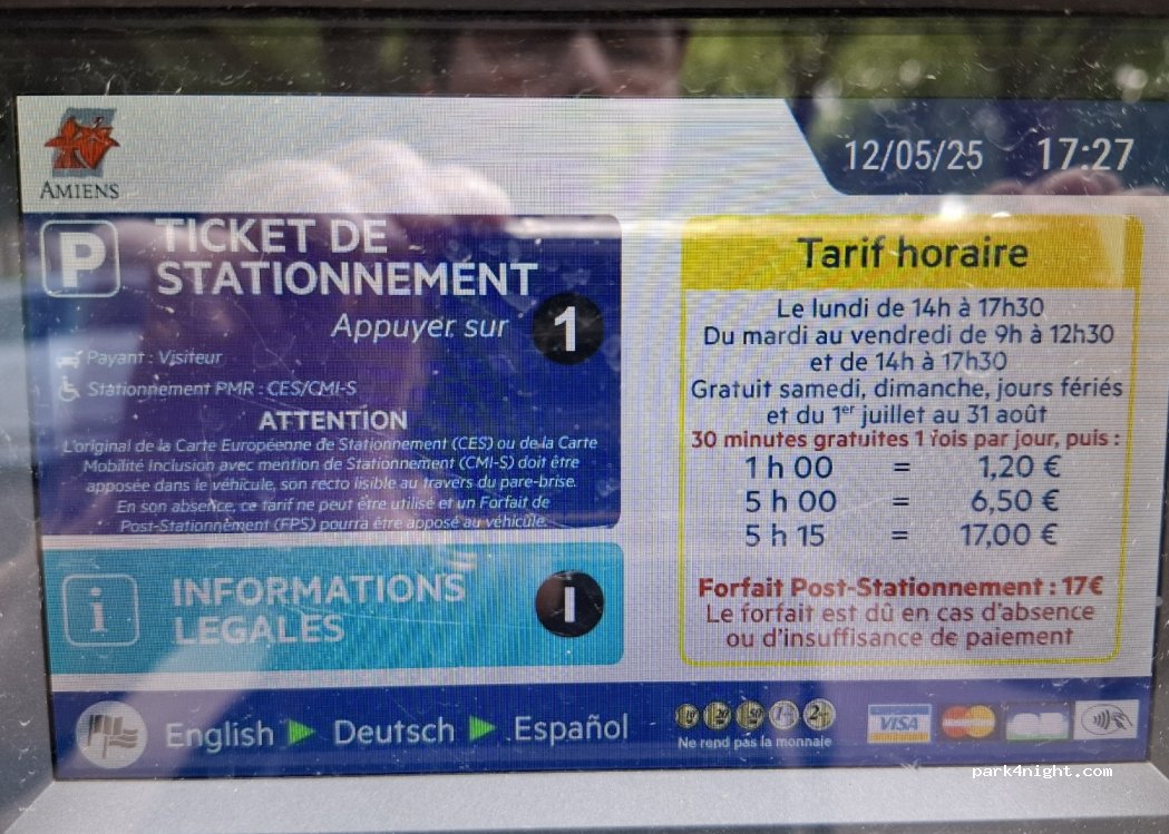 Quelques précisions: ce parking est peu occupé en journée mais vous ne pouvez y rester la journée entière, sauf à payer cher: 17€. Le soir venu, les habitants du quartier viennent s’y garer, alors ne soyons pas encombrants mais discrets: 1 ou 2 vans/nuit.