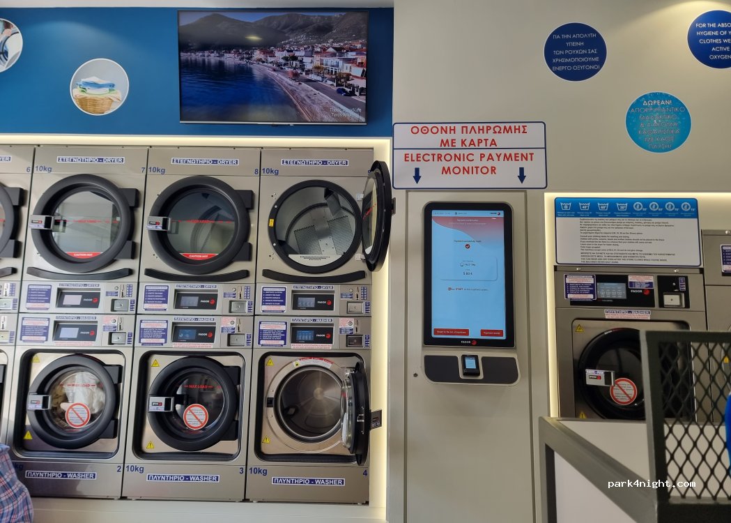 Laverie parfaite ! On s'est garé au port de Nauplie c'est à 5min à pied. Pratique et on peut payer en carte directement.