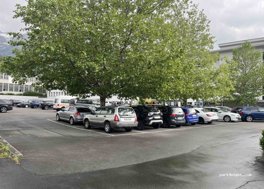 Large parking lot close to the center. Ideal for exploring the city. And for lunch or dinner at the Nüssbäumli restaurant with a wonderful view. It's about a 20-minute walk, but it's worth it. We parked here with our 6m van with a bike rack.