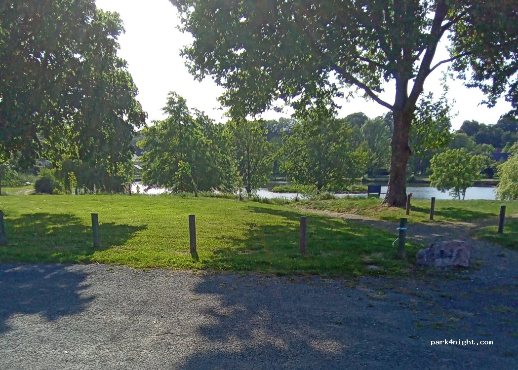 Vraiment bien, très calme, des jeux pour enfants (4 balançoires dont une pour bébé, un toboggan), arboré. On trouve facilement de l'ombre mais c'est plus compliqué pour le plat. En se rapprochant du bâtiment (au milieu, après la zone parking), on arrive à un niveau correct.