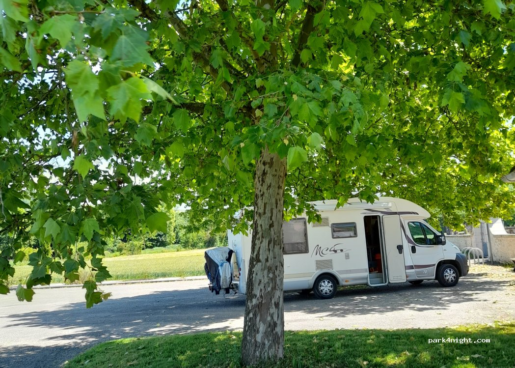 Parking du cimetière, bien entretenu Route à proximité mais pas génante.
