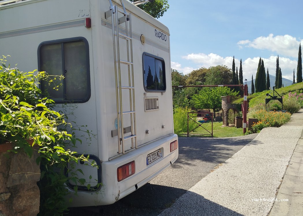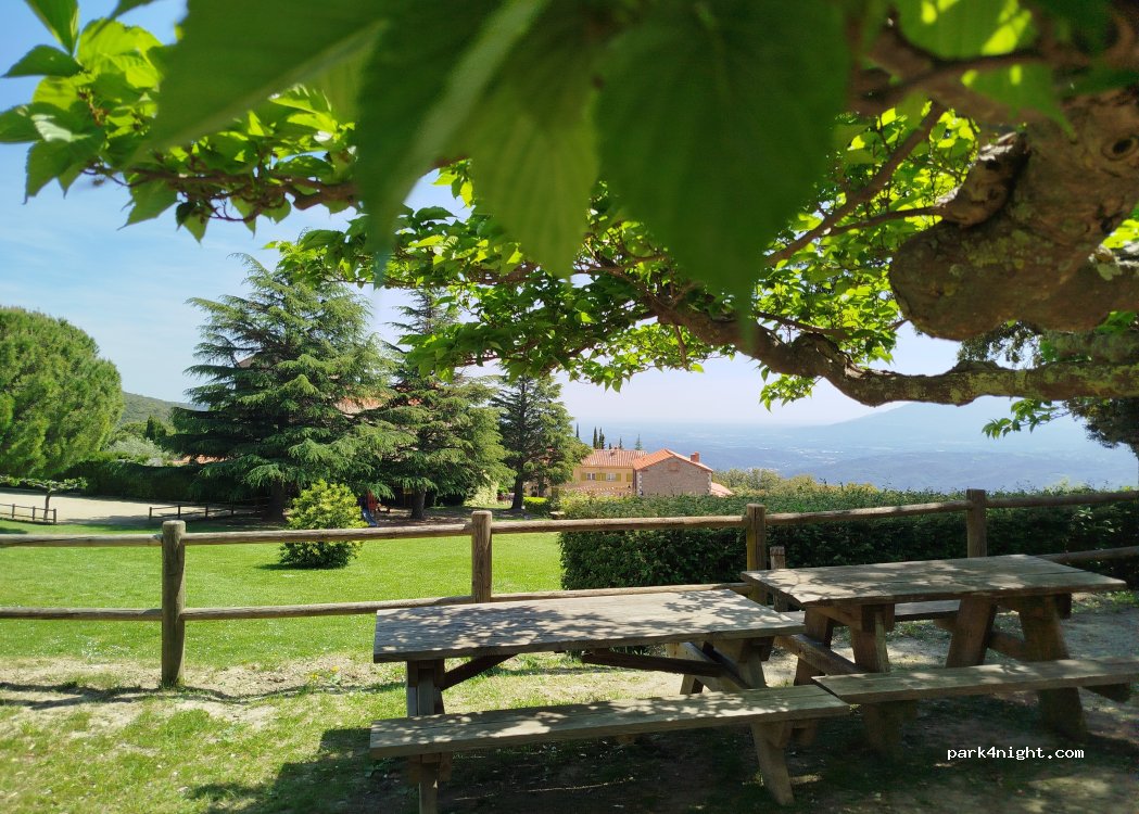 Numerous tables with barbecue, magnificent views of the plain and the sea