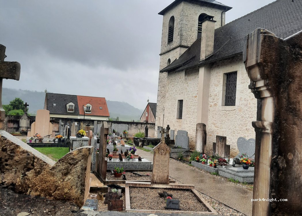 Situé dans un charmant village, proche des habitations et d'une route, mais avec peu de circulation.