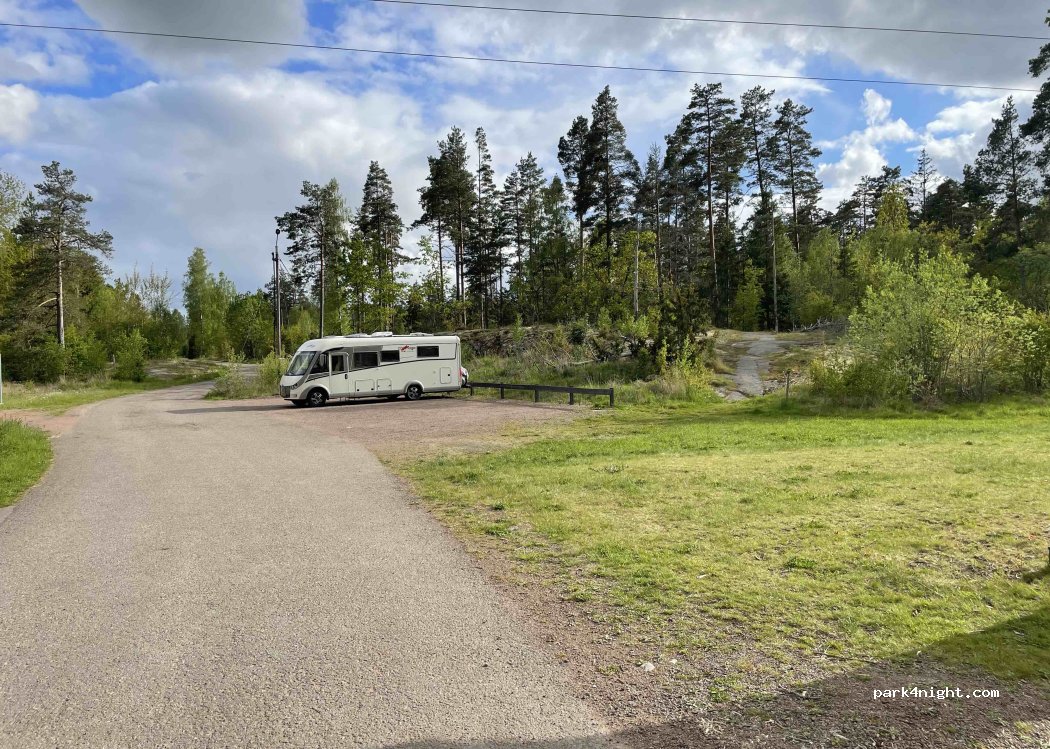 Petit stationnement au niveau des sentiers VTT. Toilettes et douches disponibles pour 10 SEK. Il y a même la possibilité de laver son vélo.