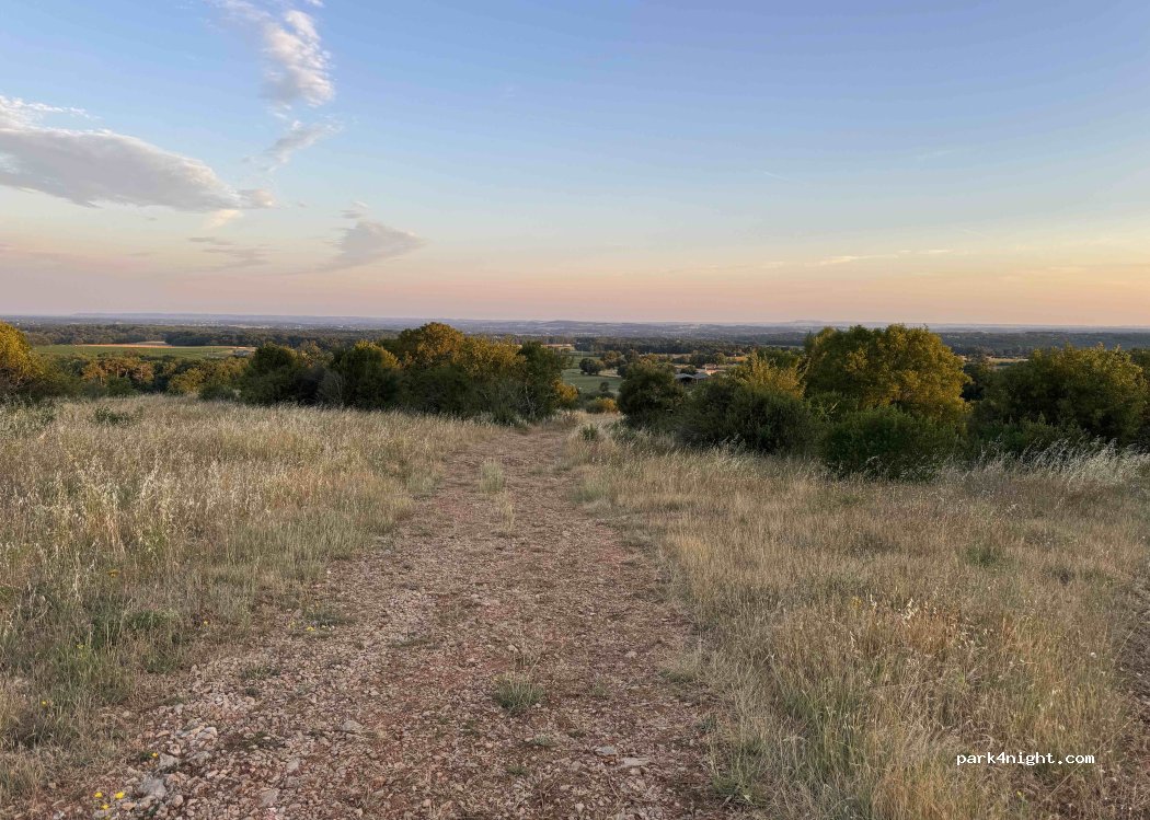 Parking de randonnées avec des dolmens jolie vue avec un beau couché de soleil et très calme.
