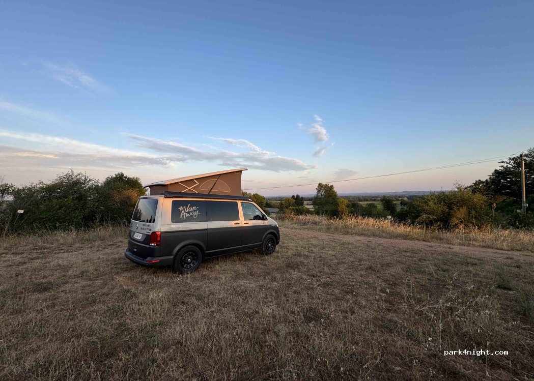Wanderparkplatz mit Dolmen, schöne Aussicht mit wunderschönem Sonnenuntergang und sehr ruhig.