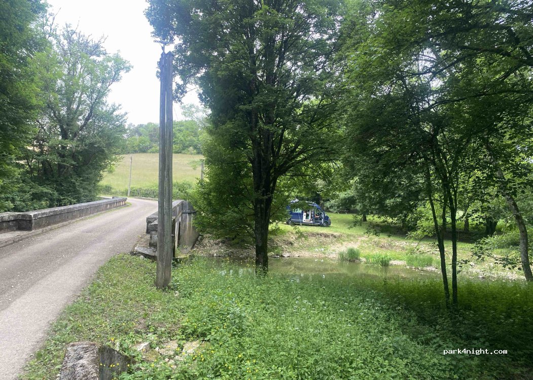 Bon que dire l’endroit idéal pour quelqu’un qui a un petit fourgon et qui veut être tranquille sans être emmerdé sans emmerder personne. Pas de confort mais c’est très bien comme ça. La rivière est magnifique. L’endroit est extrêmement calme. Tout est parfait. Merci beaucoup à la personne précédente, grâce à laquelle j’ai pu bénéficier de ce petit coin de paradis.