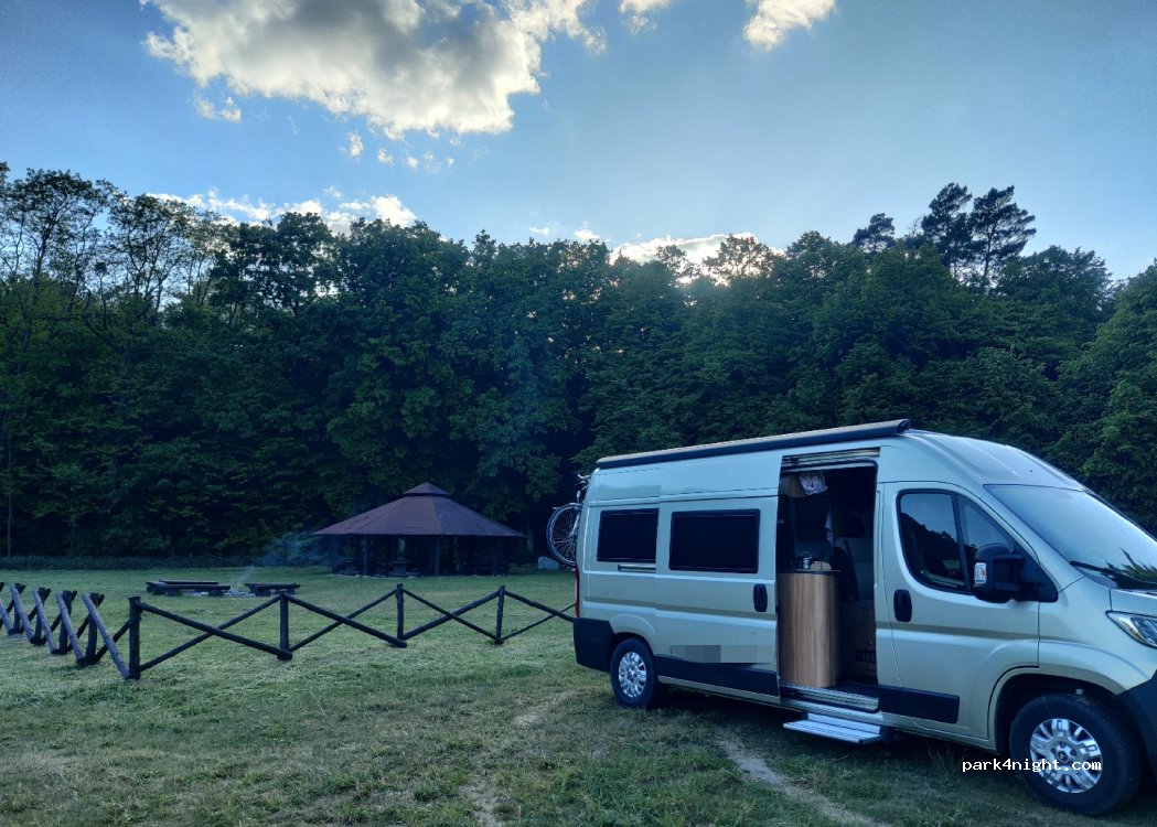A nice place, no mosquitos, possible to use a fireplace. We were here alone the whole night (on a working day), only few locals came here to walk their dog. You can hear a bit cars from the nearby road, but fortunately there is almost no traffic. We recommend!