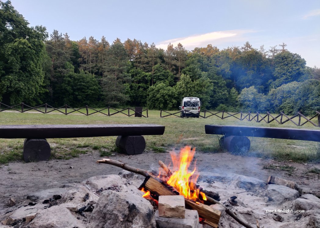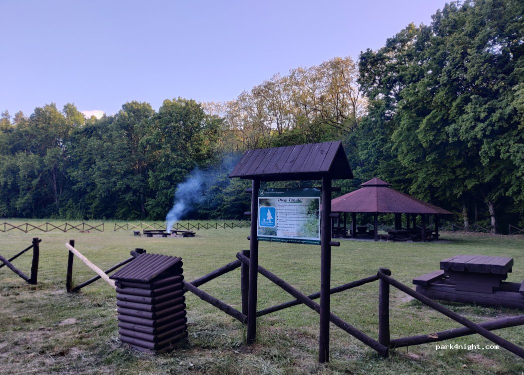 Well-maintained forest recreation area run by the Polish Forestry Office. A fire pit, several seating areas, and trash receptacles are available. Easy and short access. The nearby road is audible, but quiet at night. Cycling and hiking opportunities are available.