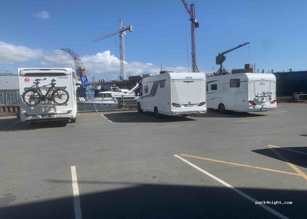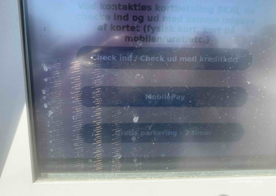 Public parking with various slots for longer vehicles. The first 2 hours are free.