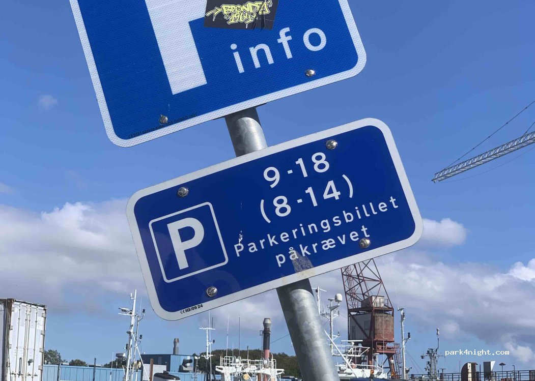 Aparcamiento público con varias plazas para vehículos más largos. Las primeras 2 horas son gratis.